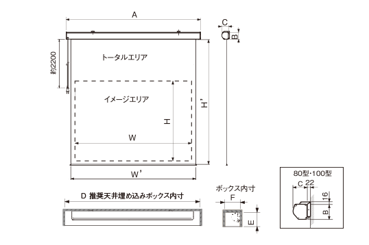| 型 | 推奨天井埋め込みボックス | 価格 | 推奨天井埋め込みボックス内寸 D×E×F(mm) |