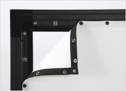 アルミ製のフレームを組み立て、フレームの裏側からスクリーンをスナップボタンでセットします。 - ● 高水準の平面性を確保