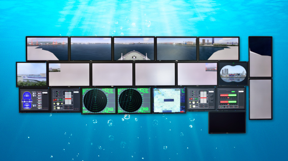 キクチ科学はフラットディスプレイを使用したシミュレーターの構築にも取り込んでいます。 操船シミュレーターやドライビングシミュレーターなど様々な訓練施設で的確な技術や安全性を学ぶための、臨場感のある環境を提供しています。